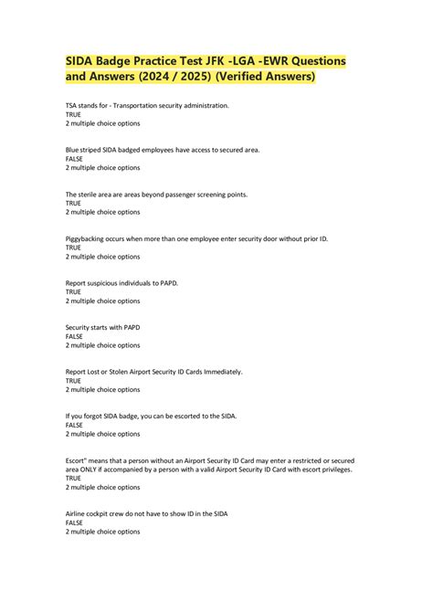 Read SIDA TEST ANSWER JFK AIRPORT Kobo PDF